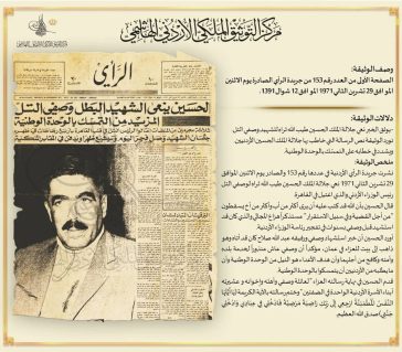 مركز التوثيق الملكي ينشر وثيقة بمناسبة ذكرى استشهاد وصفي التل