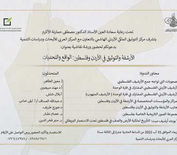 ورشة نقاشية بعنوان "الأرشفة والتوثيق في الأردن فلسطين: الواقع والتحديات"