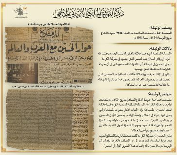 مركز التوثيق الملكي ينشر وثيقة بمناسبة الذكرى 54 لمعركة الكرامة
