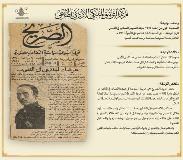 التوثيق الملكي يعرض وثيقة بمناسبة تولي الملك طلال سلطاته الدستورية