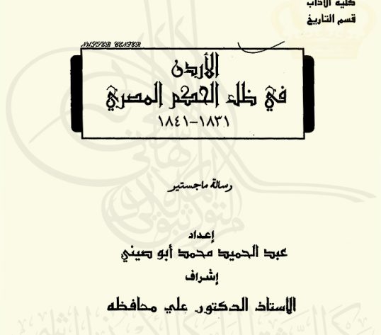قدمت هذه الرسالة استكمالاً لمتطلبات درجة الماجستير في التاريخ الحديث المعاصر في كلية الآداب - جامعة اليرموك