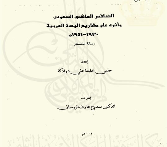 الفصل الأول: أصول أو جذور العلاقات الهاشمية – السعودية (1908-1930).الفصل الثاني: الموقف الهاشمي السعودي حول مستقبل سوريا وفلسطين في الثلاثينات (1930-1939).الفصل الثالث: الهاشميون والسعوديون ومشاريع الوحدة الإقليمية في الأربعينات (1941-1947).الفصل الرابع: الهاشميون والسعوديون ومشاريع الوحدة الثنائية (1947-1951).