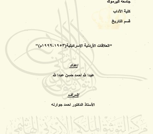 قدمت هذه الرسالة استكمالاً لمتطلبات درجة الماجستير في التاريخ الحديث المعاصر بكلية الآداب - جامعة اليرموك