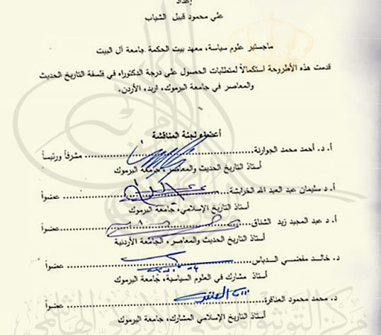 قدمت هذه الرسالة استكمالاً لمتطلبات الحصول على درجة الدكتوراه في فلسفة التاريخ الحديث والمعاصر، جامعة اليرموك