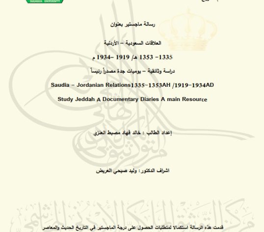 قدمت هذه الرسالة استكمالاً لمتطلبات درجة الماجستير في التاريخ الحديث والمعاصر قسم التاريخ - جامعة اليرموك