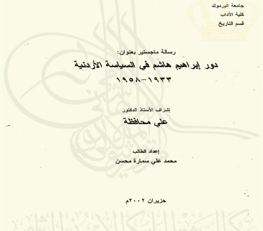 قدمت هذه الرسالة استكمالاً لمتطلبات درجة الماجستير في التاريخ الحديث المعاصر في كلية الآداب-جامعة اليرموك