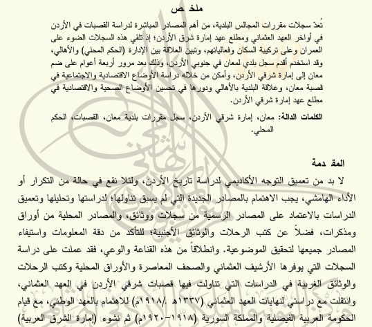 تعدّ سجلات مقررات المجالس البلدية، من أهم المصادر المباشرة لدراسة القصبات في الأردن في أواخر العهد العثماني ومطلع عهد إمارة شرق الأردن؛ إذ تلقي هذه السجلات الضوء على العمران وعلى تركيبة السكان وفعاليتهم، وتبين العلاقة بين الإدارة (الحكم المحلي) والأهالي، وقد استخدم أقدم سجل بلدي لمعان في جنوبي الأردن، وذلك بعد مرور أربعة أعوام على ضم معان الى إمارة شرقي الأردن، وأمكن من خلاله دراسة الأوضاع الاقتصادية والاجتماعية في قصبة معان، وعلاقة البلدية بالأهالي ودورها في تحسين الأوضاع الصحية والاقتصادية في مطلع عهد إمارة شرقي الأردن.