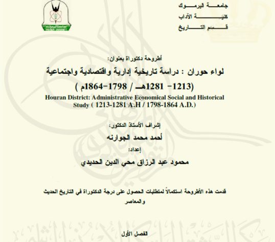 قدمت هذه الأطروحة استكمالاً لمتطلبات الحصول على درجة الدكتوراة في التاريخ الحديث والمعاصر – كلية الآداب- جامعة اليرموك