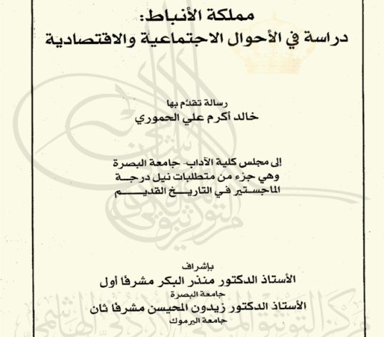 بإشرافالأستاذ الدكتور منذر البكر مشرفاً أول / جامعة البصرةالأستاذ الدكتور زيدون المحيسن مشرفاً ثانٍ / جامعة اليرموك