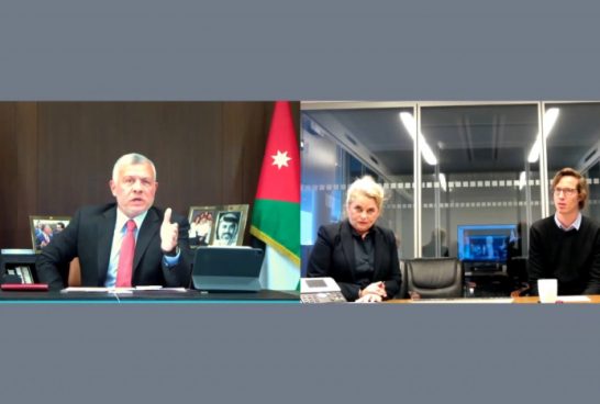 جلالة الملك: بتقديري، لن تحصل أية دولة في العالم على العلامة الكاملة في إدارة الأزمة، (أما في الأردن) الحكومة قامت بإغلاق البلاد في وقتٍ مبكرٍ، وتم عزل جميع الذين دخلوا إلى الأردن مباشرةً عبر المطار في فنادق، وفي الوقت ذاته، وجدنا أنفسنا في وضع يسمح لنا بمساعدة الآخرين حول العالم.