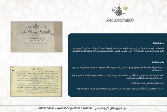 وَتُعَدُّ هذه الوثيقةُ إحدى المحطات المفصليَّة في تاريخ المملكة الأردنيَّة الهاشميَّة السياسيِّ الحديث؛ لِما لها من تَبِعاتٍ داخليَّة وإقليميَّة أسَّسَت لمسار جديد في العلاقة بين الضفَّتين، وشكَّلت أساسًا لسياسات المملكة تِجاه القضيَّة الفلسطينيَّة في العقود اللاحقة.