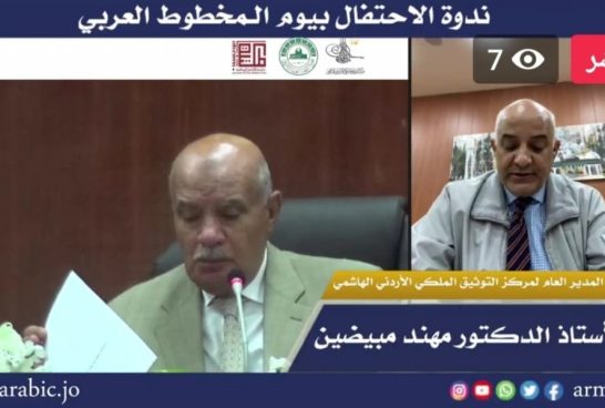نظّم مجمع اللغة العربية الأردني صباح اليوم الاثنين الرابع من نيسان ندوةً افتراضية بمناسبة يوم المخطوط العربي لعام ٢٠٢٢م بالتعاون مع مركز التوثيق الملكي الأردني الهاشمي ودائرة المكتبة الوطنية، تحت شعار "إرثنا المخطوط في زمن العولمة"، أدارها عضوُ المجمع الأستاذ الدكتور محمد حوّر عبر تقنية الاتصال المرئي عن بعد، بحضور أمين عام المجمع الأستاذ الدكتور محمد السعودي وعدد من الأعضاء، وشارك فيها باحثون محليون وعرب وهم: عضو المجمع الأستاذ الدكتور سمير الدروبي، والأكاديمي والمؤرخ والدبلوماسي السعودي الأستاذ الدكتور محمد آل زلفة، والأكاديمي والمؤرخ والدبلوماسي اليمني الأستاذ الدكتور حسين العَمري، والمدير العام لمركز التوثيق الملكي الأردني الهاشمي الأستاذ الدكتور مهند مبيضين، والمدير العام لدائرة المكتبة الوطنية الأستاذ الدكتور نضال العياصرة، والباحث في مركز الدراسات الاستراتيجية في الجامعة الأردنية الدكتور المهدي الرواضية، ومدير وحدة البحوث والخدمات المعرفية والتواصل المؤسسي في مركز التوثيق الملكي الدكتور محمود العبيدي، ومدير وحدة الترميم والصيانة في مركز التوثيق الملكي الأستاذ سليمان الشقيرات. رحّب حوّر بالمشاركين في الندوة التي أتت في إطار الاحتفال بيوم المخطوط العربي الذي ترعاه المنظمة العربية للتربية والثقافة والعلوم (الألكسو) بجامعة الدول العربية، وتحتفل به الدول العربية الأعضاء، كما تحتفل به أحياناً جهات إسلامية وأجنبية. واشتملت الندوة على ثماني أوراق بحثية هي: "مجمع اللغة العربية الأردني وتحقيق كتاب الفلاحة الأندلسية لابن العوام الإشبيلي" للدروبي، و"خطر الحروب على وضع المخطوط العربي" لآل زلفة، و"إرثنا المحفوظ في زمن العولمة" للعَمري، و"مخطوط الدر المكنون للغزي، الجزء الثامن" لمبيضين، و"دور المكتبة الوطنية في حفظ الذاكرة الوطنية" للعياصرة، و"من رفوف المكتبات ودور المخطوطات إلى واجهة الحواسيب وشاشات الهواتف الذكية" للرواضية، و"منهج تحقيق النسخ الفريدة في التراث العربي" للعبيدي، و"ترميم الوثائق والمخطوطات في الأردن، مركز التوثيق الملكي الأردني الهاشمي أنموذجاً" للشقيرات. وتحدث الدروبي عن دور مجمع اللغة العربية الأردني في تحقيق كتاب الفلاحة الأندلسية لابن العوام الإشبيلي، وتقع الموسوعة في سبعة أجزاء موزعة ومرتبة على أبواب وفصول وفق المنهج الذي اعتمده المؤلف، وأقام الدروبي دراسة علمية قيمة على هذه الموسوعة، وأشار إلى الجهود المبذولة في مجال دراسة الفلاحة في العالم وعند العرب في المشرق والمغرب، وذكر أهم المدارس المعنية في الفلاحة منذ القرن التاسع الميلادي، وقسم المحققون الموسوعة إلى قسمين، تضمن الأول دراسة موسعة وُزعت على ستة فصول تضمنت دلالة لفظة الفلاحة اللغوية والاصطلاحية في المعاجم اللغوية وكتب تصنيف العلوم عند العرب وكتب الفلاحة، وتضمنت حياة المؤلف ابن العوام ومؤلفاته، ومصادر الكتاب، وأهمية هذه الموسوعة وقيمتها العلمية، ونشرات الموسوعة وترجماته، ونسخها الخطية ومنهجية العمل في التحقيق. وتضمن القسم الثاني النص المحقق اعتماداً على نسخة باريس، ونسخة المتحف البريطاني، ونشرة المستشرق بانكويري. وتقاسم المحققون إنجاز الموسوعة، بحيث تولى الدروبي كتابة المقدمة والدراسة والفهارس الفنية وثبت المصدر والمراجع، وتولى الدكتور أنور أبو سويلم تحقيق المجلد الأول (الأجزاء الأول والثاني والثالث)، وتولى الدكتور علي المحاسنة تحقيق المجلد الثاني (الأجزاء الرابع والخامس والسادس). وبعد الفراغ من التحقيق صنع المحققون فهارس فنية واسعة للموسوعة تضمنت أسماء النبات والحيوان والأمراض والترب والأدوات والمصطلحات ونحو ذلك. وأشار آل زلفة في حديثه إلى أن المخطوط العربي كان من أبرز ضحايا الحروب، التي ظلت على مدى التاريخ من أبرز المهددات للمخطوط العربي، وأن الحروب الحديثة التي شهدها عالمنا العربي في عقوده الأخيرة والتي لا يزال بعضها مستمرا من أهم