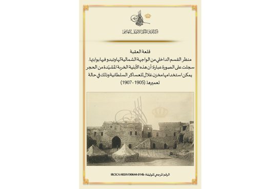 عرض مركز التوثيق الملكي الأردني الهاشمي وثيقة عثمانية من محفوظات الأرشيف التركي المنشورة في كتاب "الأردن من خلال وثائق الأرشيف العثماني" الصادر عن المركز بالتعاون مع مركز الأبحاث للتاريخ والفنون والثقافة الإسلامية (إرسيكا)، تتضمّن منظر القسم الداخلي من الواجهة الشمالية لقلعة العقبة وتبدو فيها بوابتها. سجلت على الصورة عبارة: أن هذه الأبنية الخربة المشيّدة من الحجر يمكن استخدامها مخزن غلال للعساكر السلطانية وذلك في حالة تعميرها. (1905 - 1907)